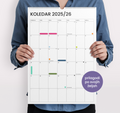 Minimalističen koledar v velikosti A3, zasnovan tako, da se popolnoma prilagodi tvojemu življenju. Na vsako stran lahko dodaš svoje pomembne datume, barvno označiš dogodke in si ustvariš vizualno pregleden pregled leta. Minimalistična zasnova poskrbi, da bo koledar lepo dopolnil vsak prostor — od pisarne do domače stene.